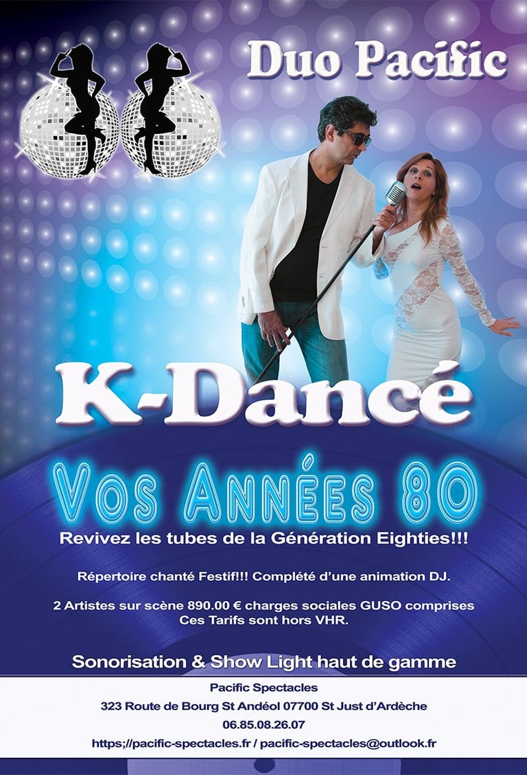 Le duo Pacific vous propose sa formule dansante années 80. Chanté en direct et complétée par une animation DJ. formule clé en main avec structure technique son éclairage alors prêt pour une soirée années 80?